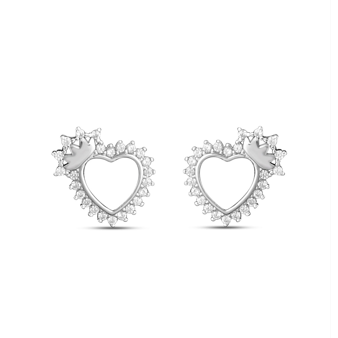 Deluxe Solitaire Heart - 925 Silver Heart Dangler Earrings