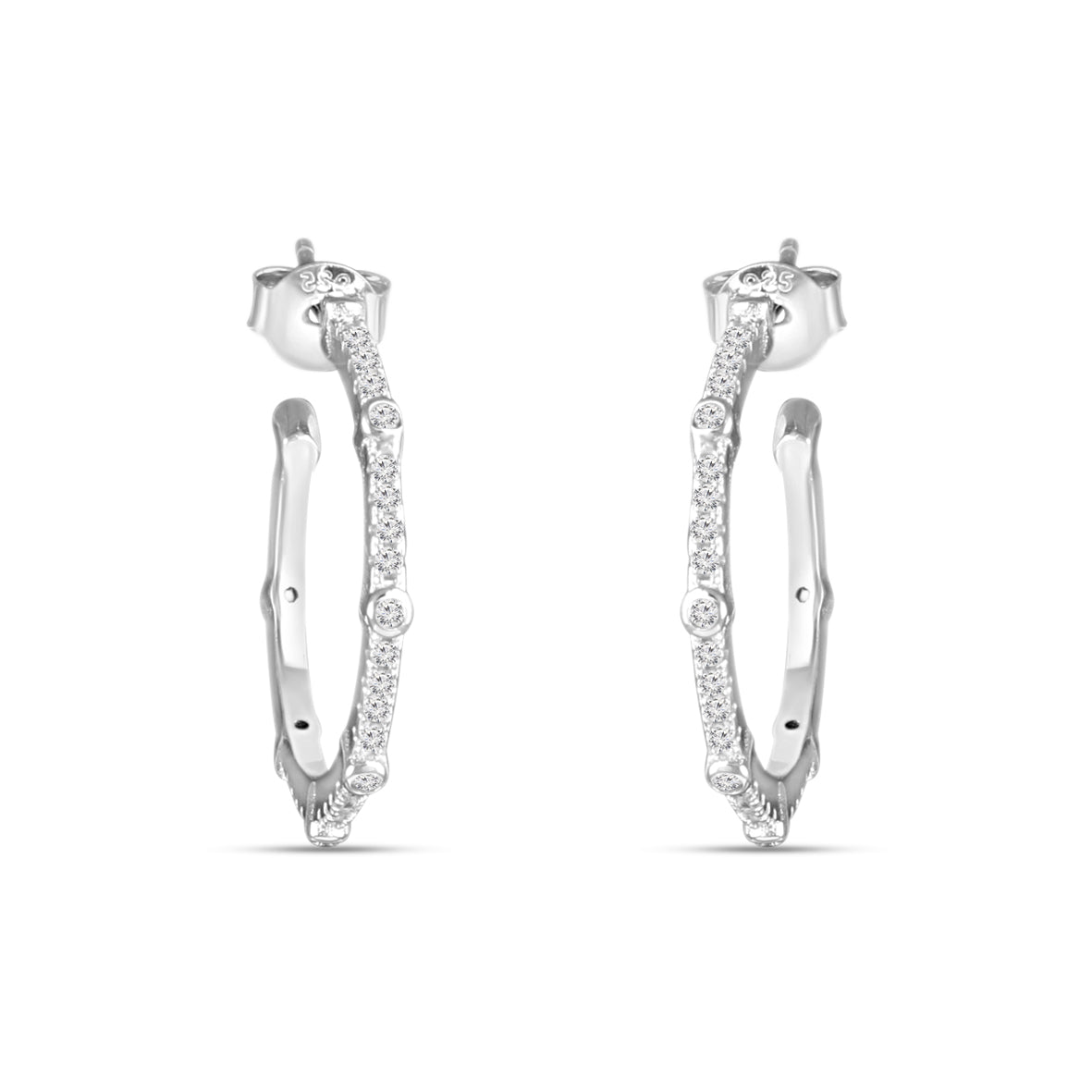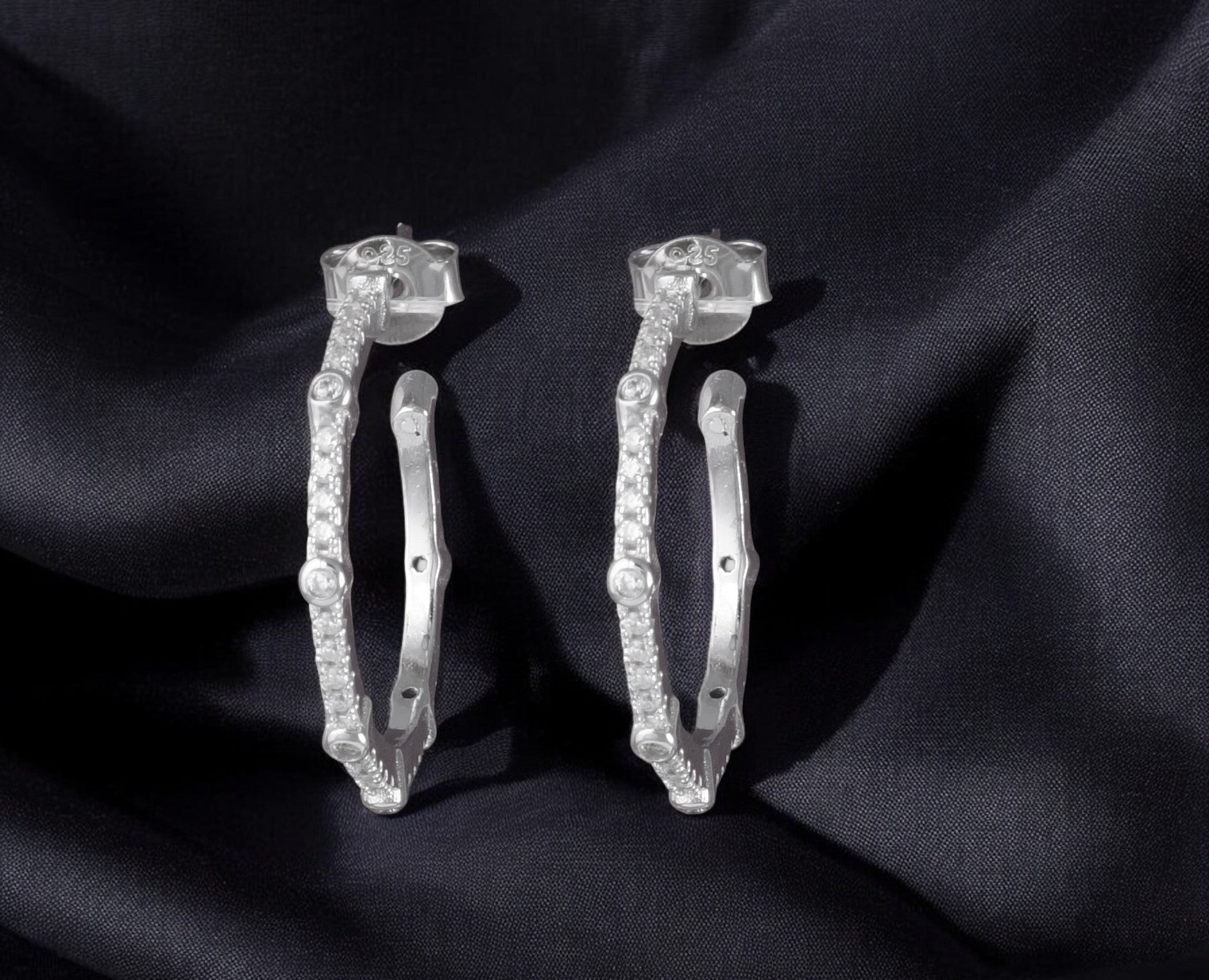 Pave and Bezel Half Hoop Earrings 925 Sterling Silver