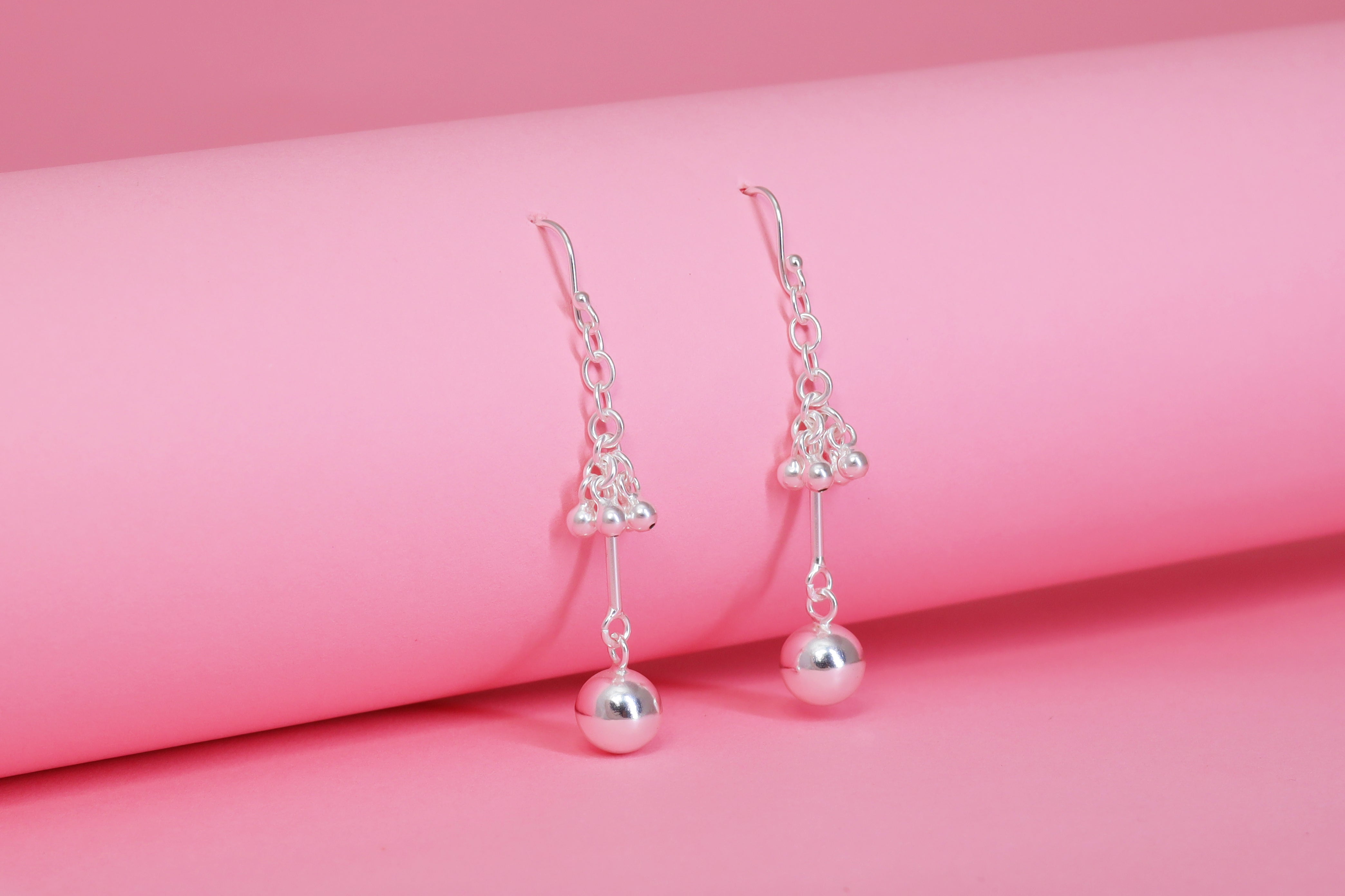Metal ball 925 Sterling Silver Dangling Hook Earrings for Women