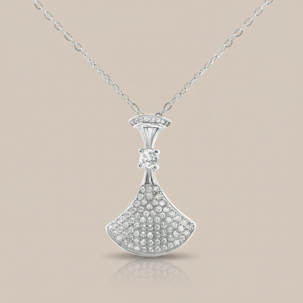 925 Sterling Silver Classic Fan Pendant Necklace with Adjustable Length For Women