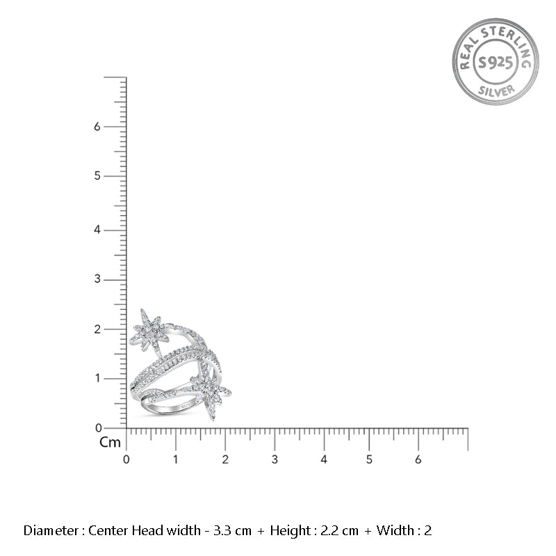 Ethena Star Dazzle 925 Sterling Silver Ring. Adjustable ring size. Fits comfortably between Indian ring size 9 to 17