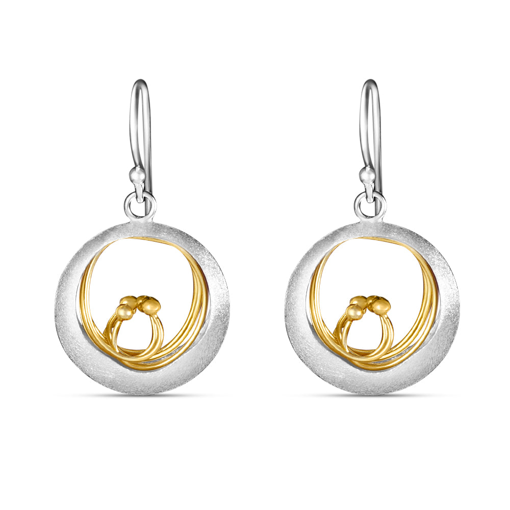 Handmade Yumi Gold and Rhodium Plated 925 Sterling Silver Hook Earrings for Women