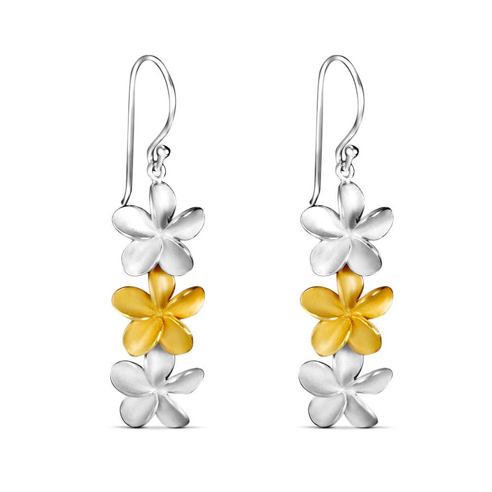 Hawaiian Plumeria Floral Rhodium and Gold Plated 925 Sterling Silver Hook Earrings for Women