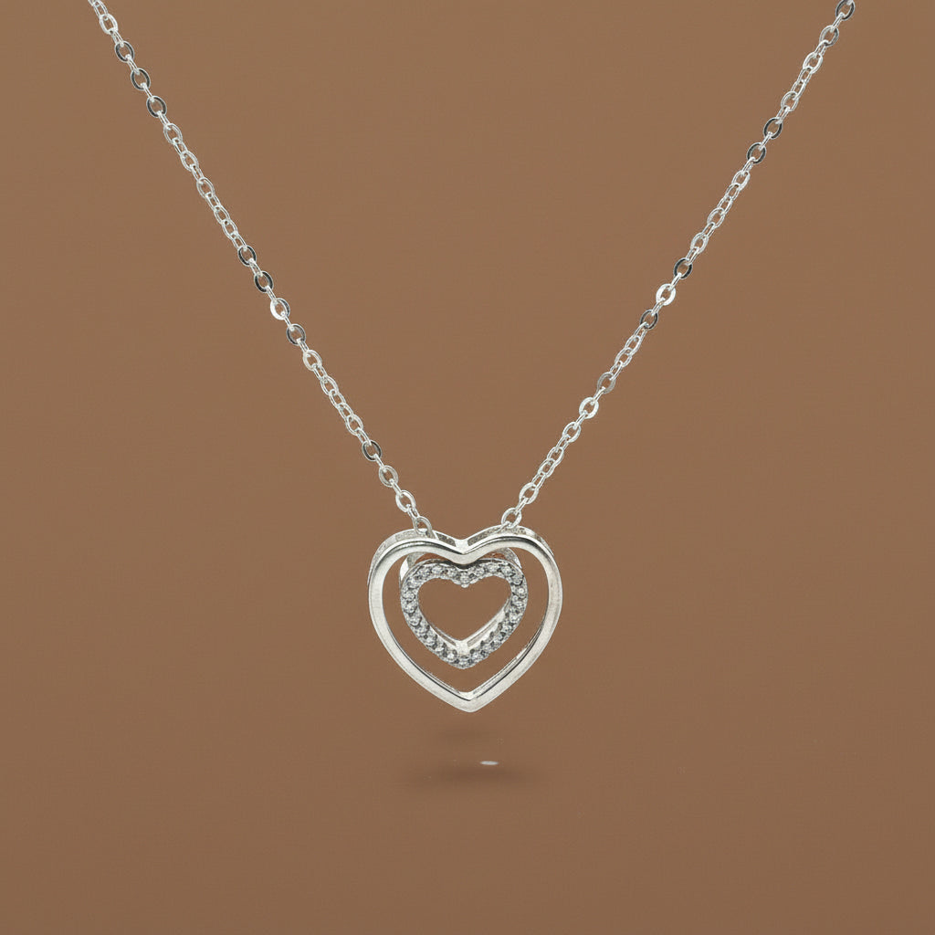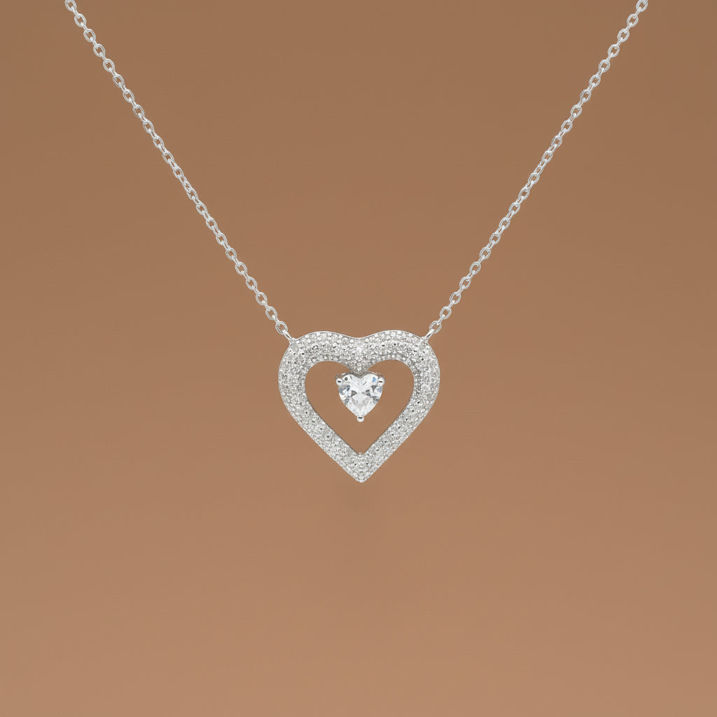 925 Sterling Silver Heart Shape Pendant Necklace with Adjustable Length