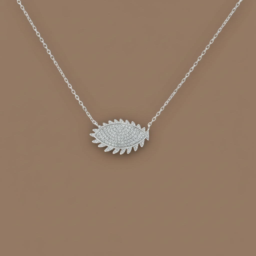 925 Sterling Silver Eye Shape Pendant Necklace with Adjustable Length
