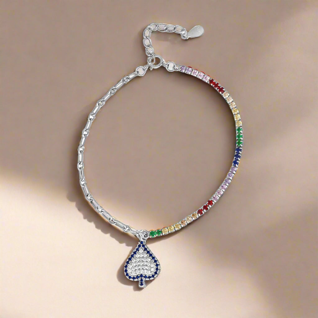 Rainbow Multi Color 925 Sterling Silver Bracelet with Adjustable Length