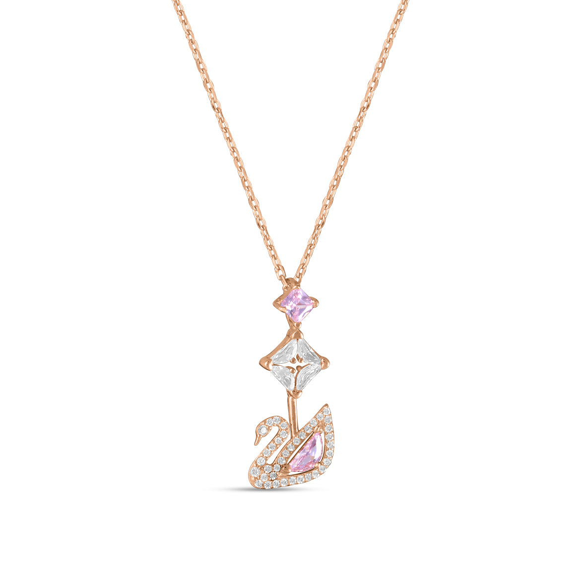 Swan Pendant Rose 925 Sterling Silver With Chain