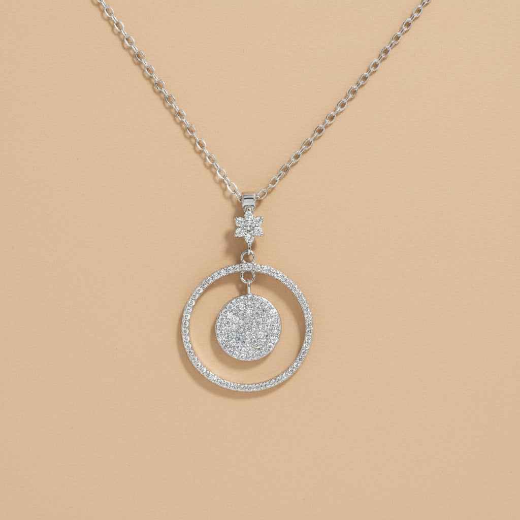 925 Sterling Silver Round Shape Pendant Necklace with Adjustable Length