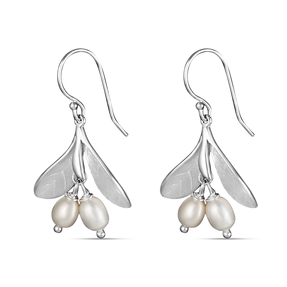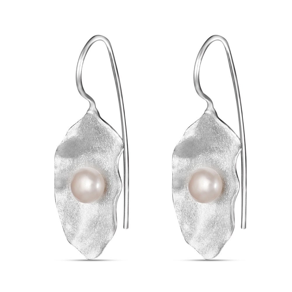 Oyster Handmade Pearl Rhodium Plated 925 Sterling Silver Dangling Hook Earrings for Women