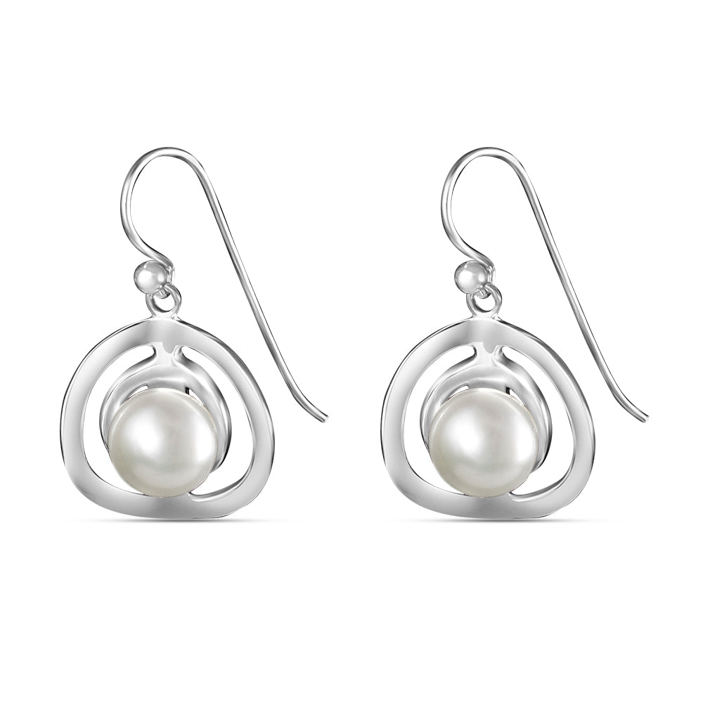 Handmade with Pearl Circle Rhodium Plated 925 Sterling Silver Dangling Hook Earrings for Women