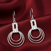 Eccentric Round 925 Sterling Silver Dangling Hook Earrings for Women