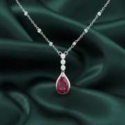 925 Sterling Silver Ruby Stone Pendant Necklace with Adjustable Length