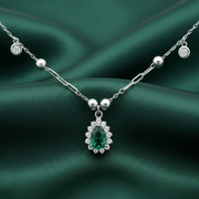 925 Sterling Silver Classic Emerald Green Stone Pendant Necklace with Adjustable Length