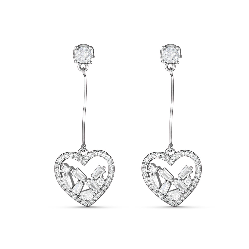 Heart Solitaire 925 Sterling Silver Dangling Earring