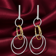 Circles Two Tone 925 Sterling Silver Hook Earrings for Women