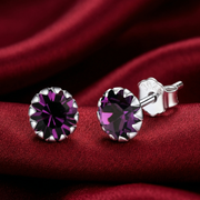 Circular Shaped 925 Sterling Silver Rhodium-Plated Silver Cubic Zirconia Classic Studs Earrings