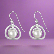 Handmade with Pearl Circle Rhodium Plated 925 Sterling Silver Dangling Hook Earrings for Women