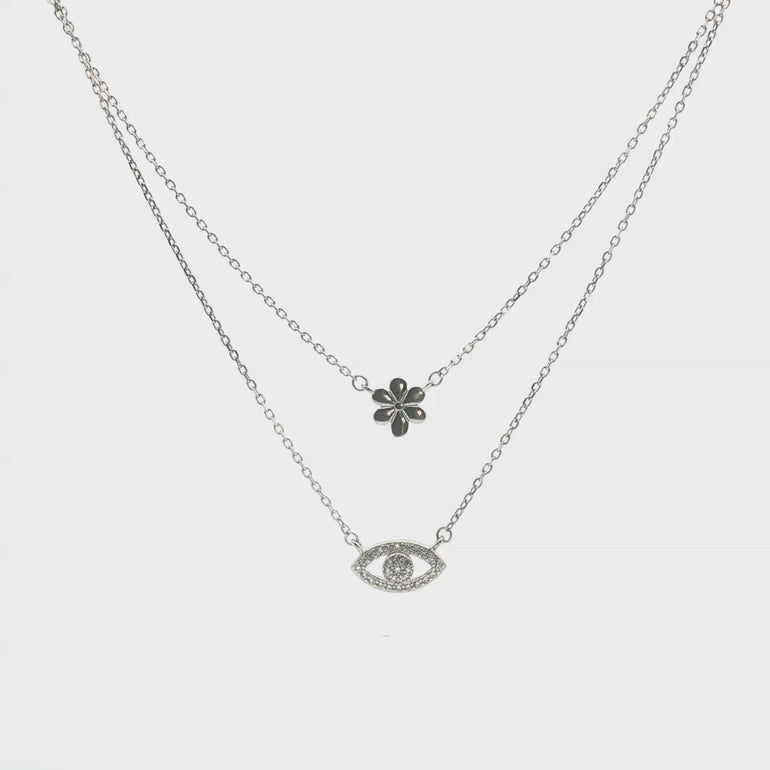 Load and play video in Gallery viewer, 925 Sterling Silver Double Layered Pendant Necklace with Adjustable Length